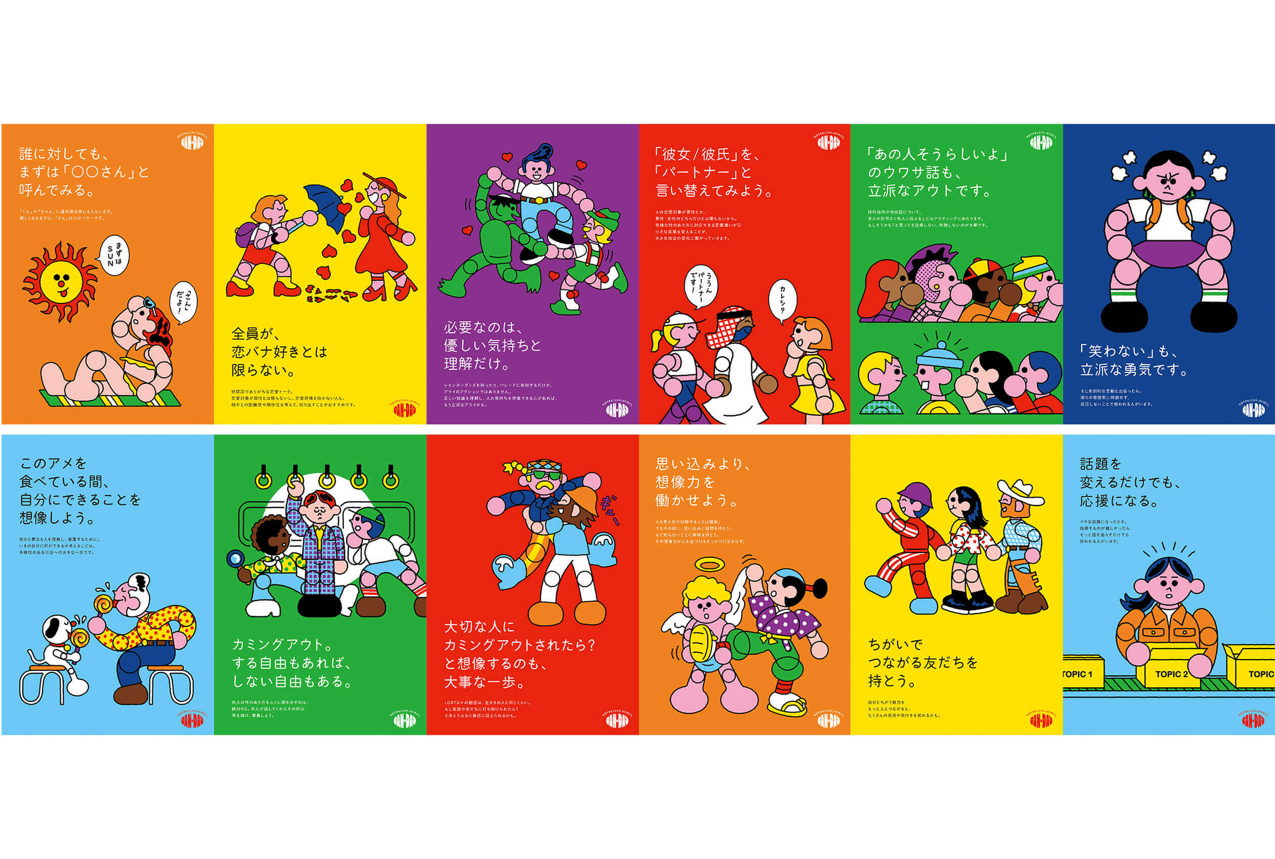 【 CAN-DAY 今日できることから、はじめよう 】Tokyo Pride 2025 に参加する博報堂DYホールディングスの施策のイラストを担当しました。ブース用のイラストからパッケージ、ステッカー、ポスターなどなどいろんな媒体をとても楽しく制作いたしました! Tokyo Prideは6月7日(土)・8(日)に代々木公園で開催されるLGBTQ+イベントです!この中、「Pride Festival」ではLGBTQ+コミュニティを応援する国内外の団体・NPO・飲食店・企業などがブースを出展する場になります。